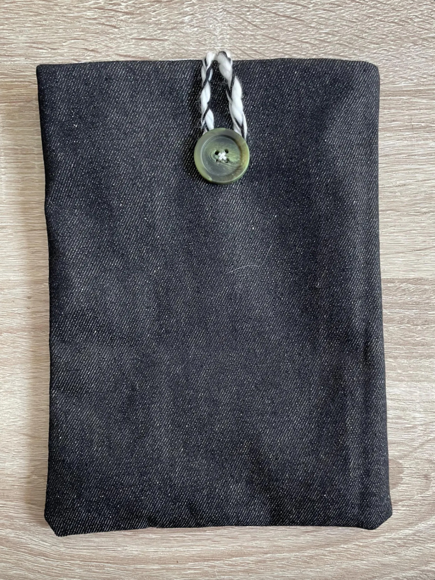 La pochette Abysses est issue d’une chute de denim uni, soigneusement sélectionnée et réinterprétée pour créer une pièce unique. Confectionnée à la main, elle est doublée et possède un système de fermeture par bouton pour garder en sécurité vos histoires préférées.