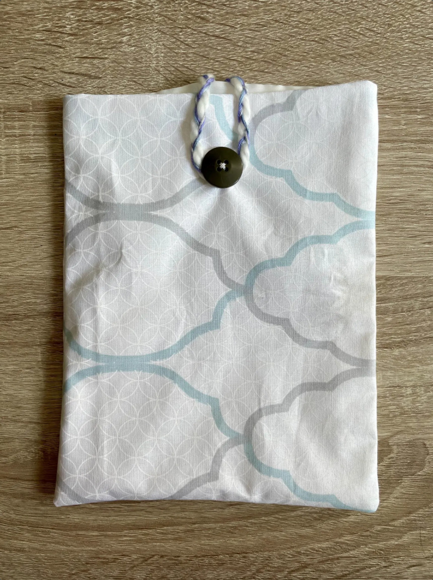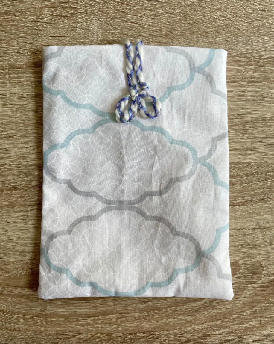 La pochette Cloud est issue d’une chute de tissu à motifs évoquant à la fois des nuages et des rosaces, soigneusement sélectionnée et réinterprétée pour créer une pièce unique. Confectionnée à la main, elle est doublée et possède un système de fermeture par bouton pour garder en sécurité vos histoires préférées.