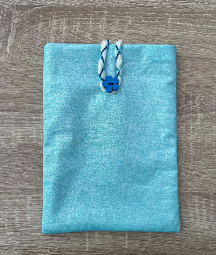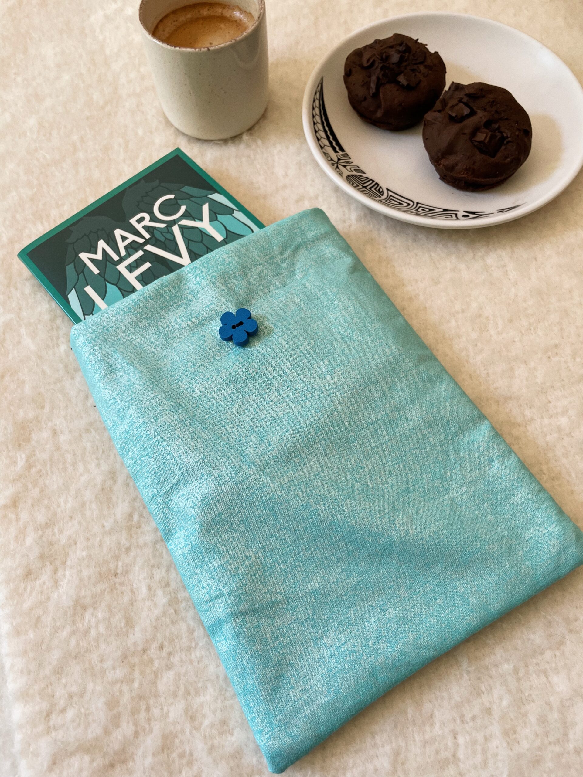 La pochette Mira est issue d’une chute de tissu uni bleu brillant, soigneusement sélectionnée et réinterprétée pour créer une pièce unique. Confectionnée à la main, elle est doublée et possède un système de fermeture par bouton pour garder en sécurité vos histoires préférées.
