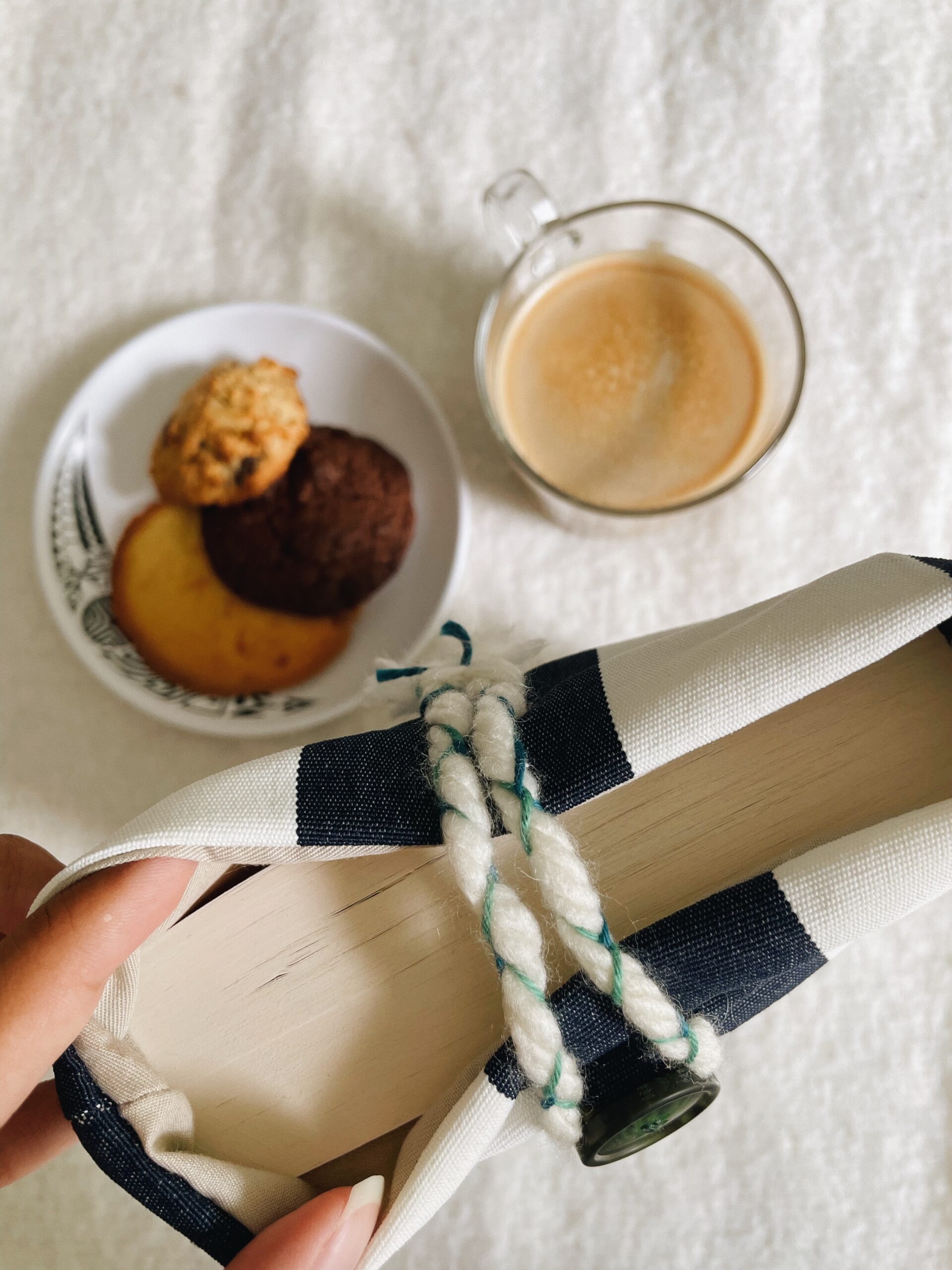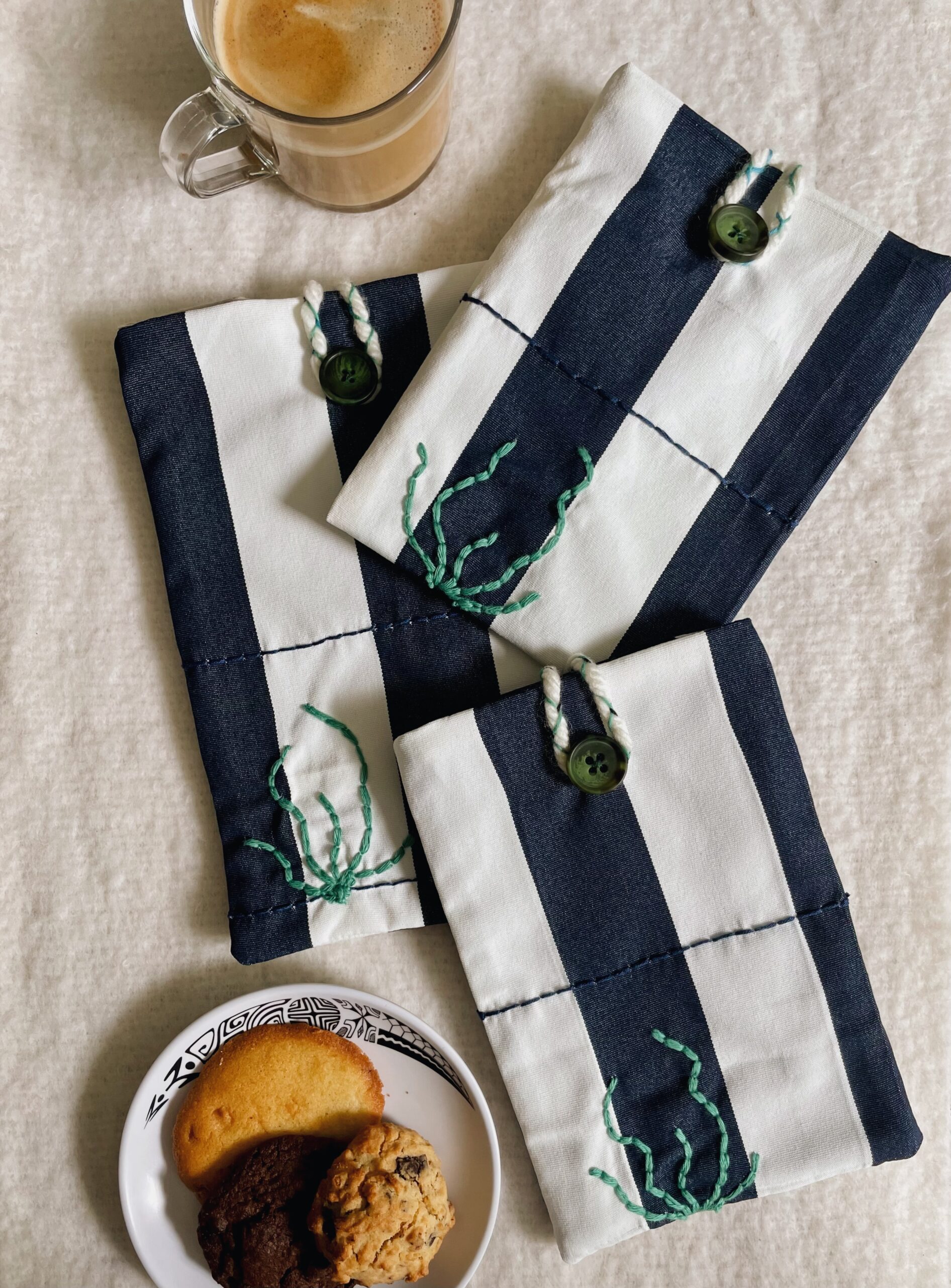 La pochette Naïa est issue d’une chute de tissu bicolore bleu et blanc à rayures, soigneusement sélectionnée et réinterprétée pour créer une pièce unique. Confectionnée à la main, elle est doublée et possède un système de fermeture par bouton pour garder en sécurité vos histoires préférées.